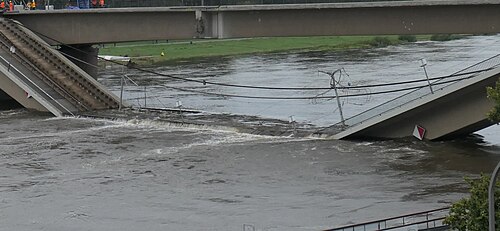 The Carola Bridge (German: Carolabrücke) was a road and tram bridge in Dresden, Germany, spanning the Elbe river. Originally built in 1895, it was destroyed by the SS on 7 May 1945 to slow the Soviet advance near the end of World War II. A replacement bridge was constructed between 1967 and 1971. A major section of the modern bridge collapsed into the Elbe on 11 September 2024. As of June 2025, the entire structure is undergoing demolition